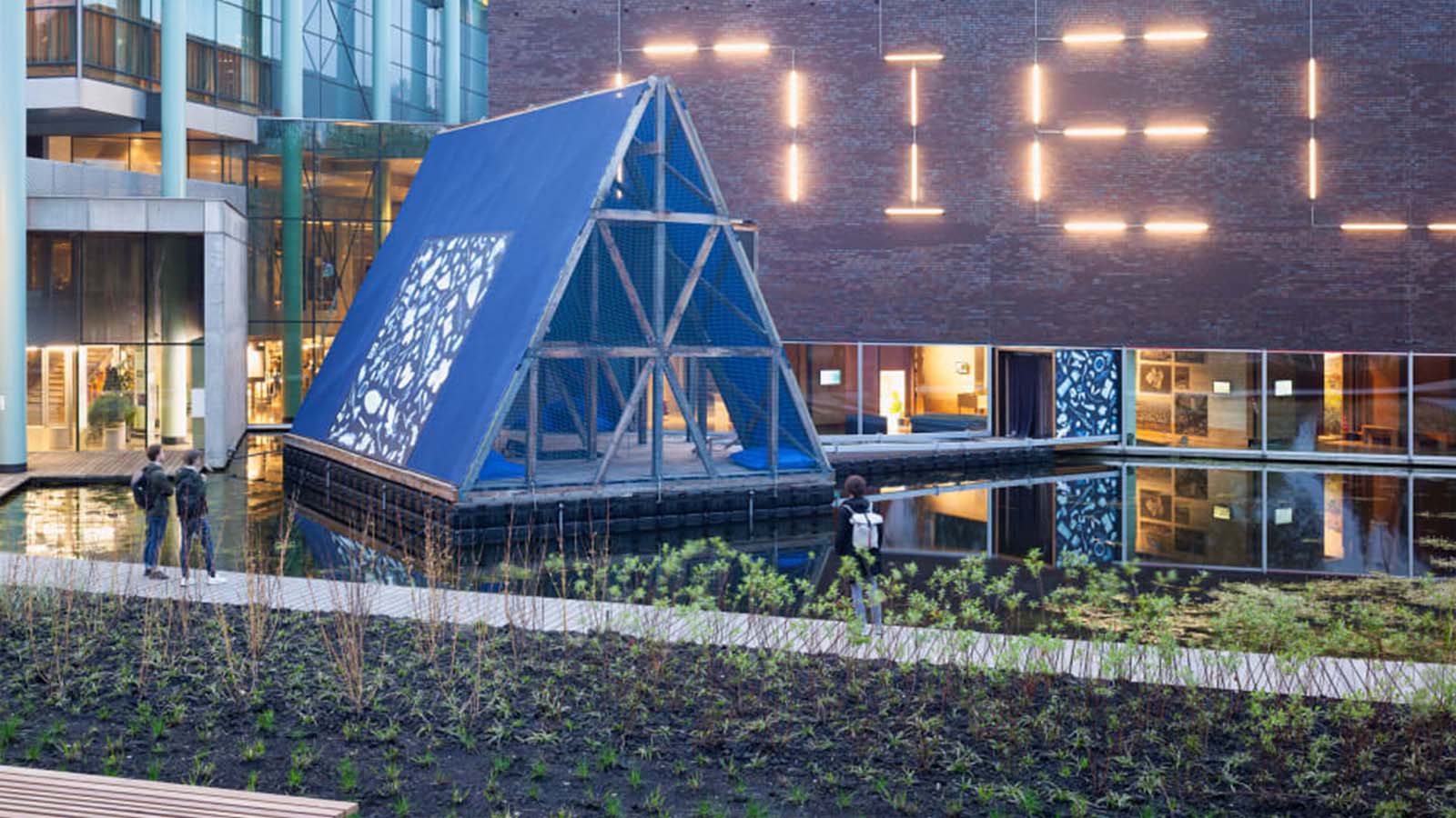 O lago decorativo que cerca o Nieuwe Instituut foi ocupado por uma enorme estrutura flutuante. Parecendo uma barraca de camping de grandes dimensões, a construção de madeira em formato de A tem mais de seis metros de altura, mas flutua sem esforço sobre uma série…