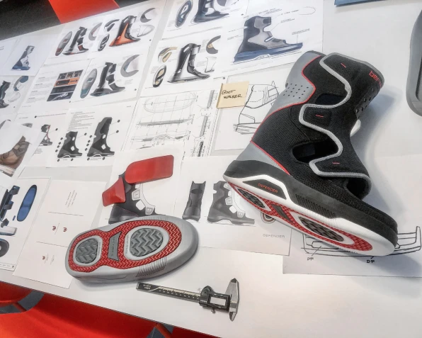 Originalmente, a DiTullo havia projetado o Foot Defender como um produto médico mais bonito, mas ainda dentro do padrão desse tipo de acessório: pensado para ser produzido por injeção em fábricas médicas. “Um ano depois, mudei de ideia. Percebi que estávamos fazendo tudo errado”, lembra DiTullo. “Precisei parar de tentar ensinar uma fábrica médica a fazer um bem de consumo e ensinar uma fábrica de calçados a construir uma bota com toda a precisão necessária.”