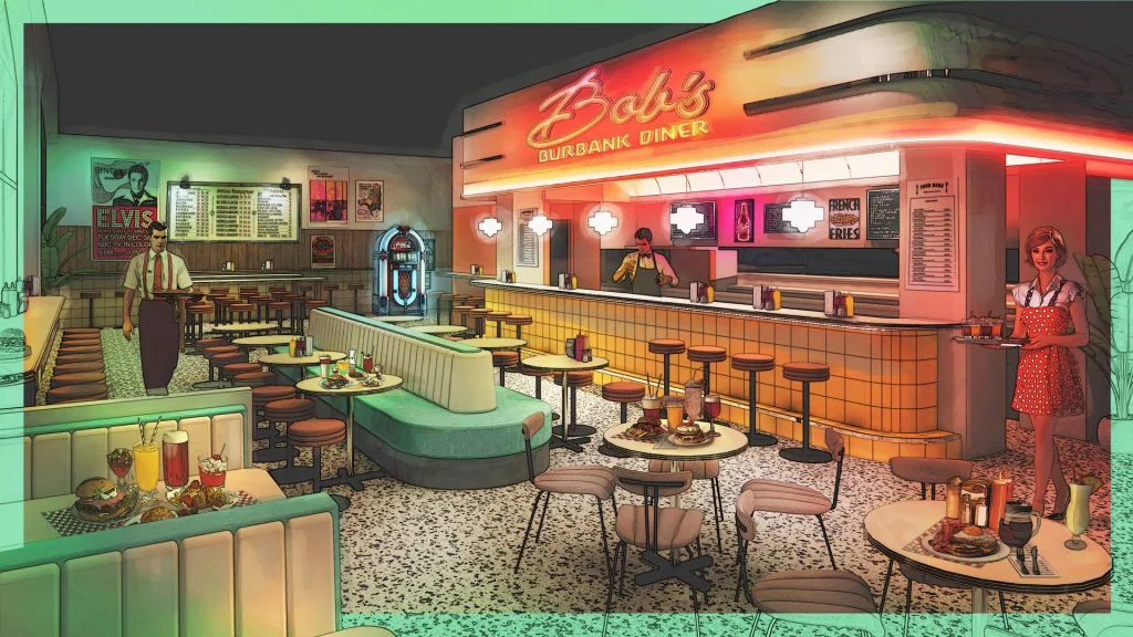 Os visitantes vão caminhar por ambientes como uma lanchonete dos anos 50 e um camarim. Em certos momentos, os próprios cenários se movimentam ao redor do público. A experiência também muda de perspectiva. “Vai ter um momento em que você literalmente vai entrar no lugar dele”, explica Simon Reveley, diretor de estúdio.