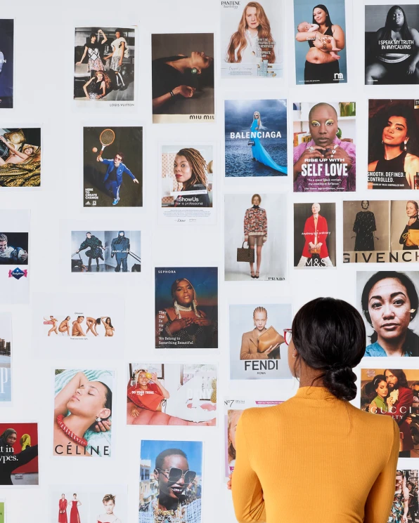 Nesses 77 anos de mídia que entraram no mural, a maior mudança ocorreu somente nos últimos dois anos, ela observa. Desde o início da pandemia, houve três vezes mais representação negra e mais representação de mulheres com mais de 40 anos, bem como maior diversidade nos tipos de corpos.