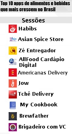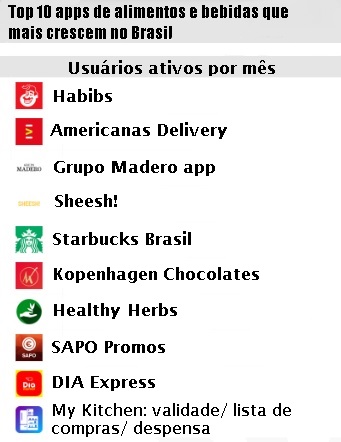 A pesquisa aponta os aplicativos que estão em movimento crescente na quantidade de downloads, frequência de uso mensal e quantidade de sessões. É notável a grande quantidade de empresas de alimentos prontos para consumo nos três critérios de análise.