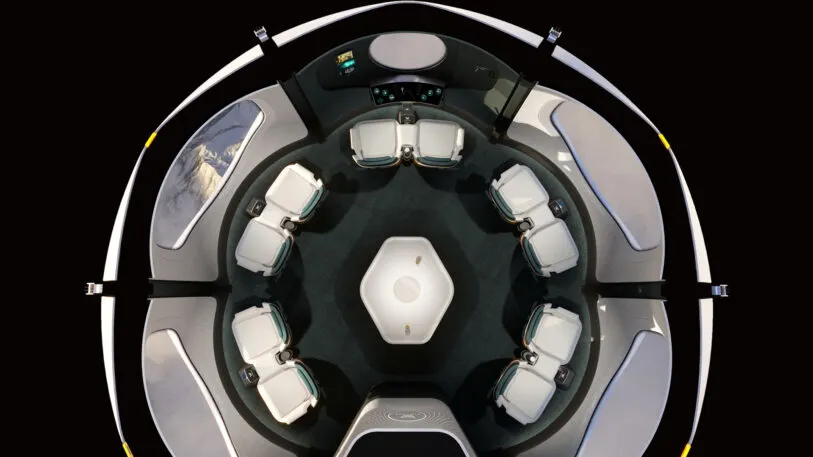 O interior das cabines é equipado com poltronas móveis e ergonômicas para oito passageiros; além de bar e serviço de catering, telescópios, wi-fi e telas de videoconferência para se comunicar com as pessoas na Terra, displays de informações e, claro, banheiros.